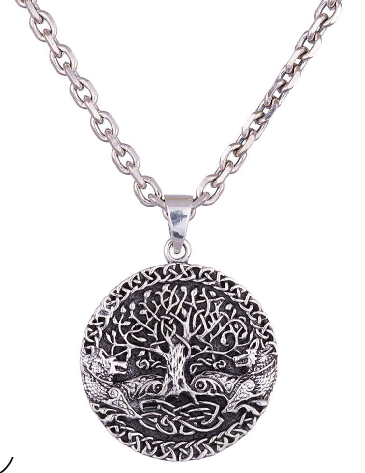 Northern Viking Jewelry Tree Of Life With Fenrir NVJ-H-RS070 on tyylikäs viikinkiaiheinen riipus, joka on valmistettu sterling-hopeasta. Hopeariipus on halkaisijaltaan 2,8 cm. Vain 7 grammaa painava Tree Of Life With Fenrir NVJ-H-RS070 -riipus toimitetaan uniikissa Northern Viking Jewelry® -juuttipussissa. Huom! Pakkaus ei sisällä ketjua!