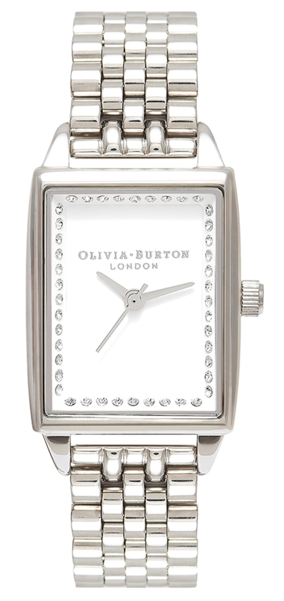 Olivia Burton Classics Tank White Bezel Dial Silver Bracelet OB16SS38 on klassinen naisten rannekello tyylikkäällä nelikulmaisella rungolla. Kellossa on kirkkaan valkoinen näyttö ja ilmeen viimeistelee kristalli-istutus. Runko on 20,5 mm leveä. Olivia Burton -kelloilla on 2 vuoden takuu, ja ne toimitetaan valmistajan alkuperäisessä rasiassa.
