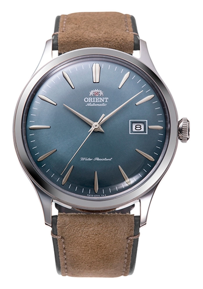 Orient Classic Bambino Automatic RA-AC0P03L miesten automaattikello kuuluu Orientin Classic-mallistoon, jonka päätavoitteena on sopia niin vapaa-ajan kelloksi, mutta myös juhlavimpiin tilaisuuksiin. Tämä klassista henkeä huokuva rannekello sisältää 22 jalokiven F6724 automaattikoneiston, jossa on 40 tunnin käyntivara. Sinistä kellotaulua suojaa kupumainen mineraalilasi, jossa on ominaisuutena päivyri klo 3 kohdalla. Kellon runko on valmistettu ruostumattomasta teräksestä ja sen leveys on 42 mm ja paksuus 12 mm. Ruskea ranneke on valmistettu aidosta nahasta, joka sopii hyvin yhteen kellon retro-ulkonäön kanssa. Orient Classic Bambino Automatic kuuluu vesitiiviysluokkaan 30 m / 3 atm, eli se on roiskevesitiivis.