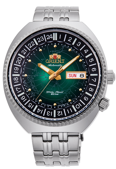 Orient RA-AA0E02E19B on 1960-luvun herätysmalli, jossa on runsaasti vanhan maailman charmia. Tässä kappaleessa on soikea runko ja ruostumattomasta teräksestä valmistettu ranneke sekä vihreä kellotaulu, joka antaa kellolle erittäin ainutlaatuisen ulkoasu. Kellossa on yksisuuntainen kehys 24-tunnin ajan näytöllä sekä day-date päivämääränäyttö kellotaulun klo 3 kohdalla. Koneistona toimii F6922 -automaattikoneisto 40 tunnin tehoreservillä. Rungon leveys on 43,5 mm ja paksuus 14 mm. Teräsranneke on pituudeltaan 150 - 205 mm ja leveydeltään kiinnityskohdasta 20 mm. Kello kuuluu vesitiiviysluokkaan 200m / 20atm, joten se on erikoisvesitiivis ja soveltuu uintiin ja laitesukellukseen.