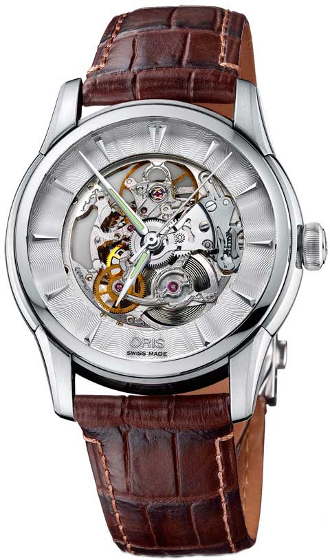 Äärimmäisen hieno Oris Artelier Skeleton 01 734 7670 4051-07 5 21 70FC rannekello. Tämän tyylikkään skeleton kellon automaattikoneisto (Oris 734) näkyy tyylikkäästi kellotaulun ja takalasin läpi. Kello herättää takuuvarmasti huomiota kaikkialla missä liikutkin. Kellon runko on leveydeltään 40mm ja ranneke 21mm. Kellolle myönnetään maailmanlaajuinen virallinen kahden vuoden takuu ja se toimitetaan valmistajan alkuperäisessä rasiassa postikuluitta!