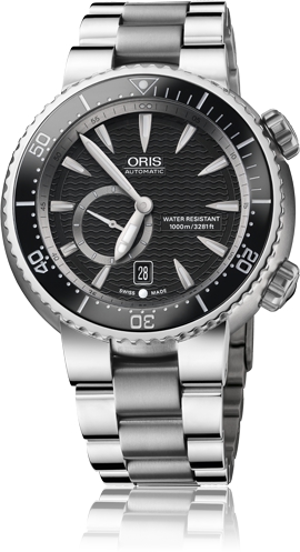 Oris Divers Titan Small Second, Date 643 7638 7454 rannekello, jossa automaattikoneisto Oris 643, base ETA 2836-2. Kellon runko on leveydeltään 47mm ja ranneke 20mm. Kello 1000m vesitiivis. Kellolle myönnetään kahden vuoden takuu ja se toimitetaan valmistajan alkuperäisessä rasiassa postikuluitta!