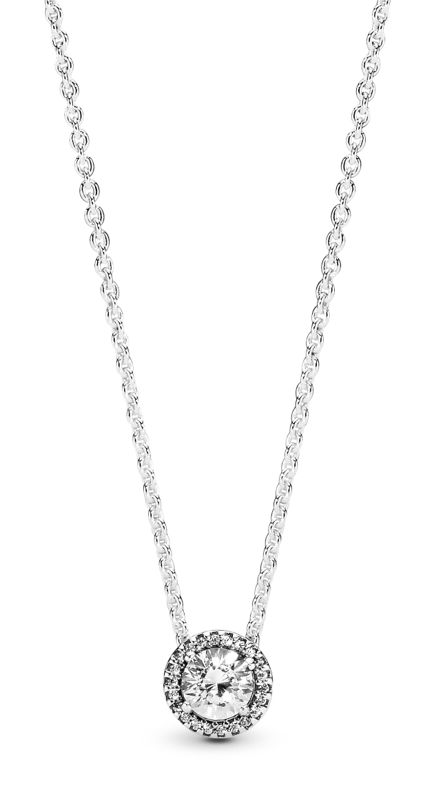 Pandora Classic Elegance kaulakoru 396240CZ-45 on sterling-hopeaa, ja ketjua koristaa ylellinen halo-riipus kirkkailla zirkonioilla. Riipuksen koko on 8,5 mm. Pandora-korut toimitetaan valmistajan alkuperäisessä rasiassa.