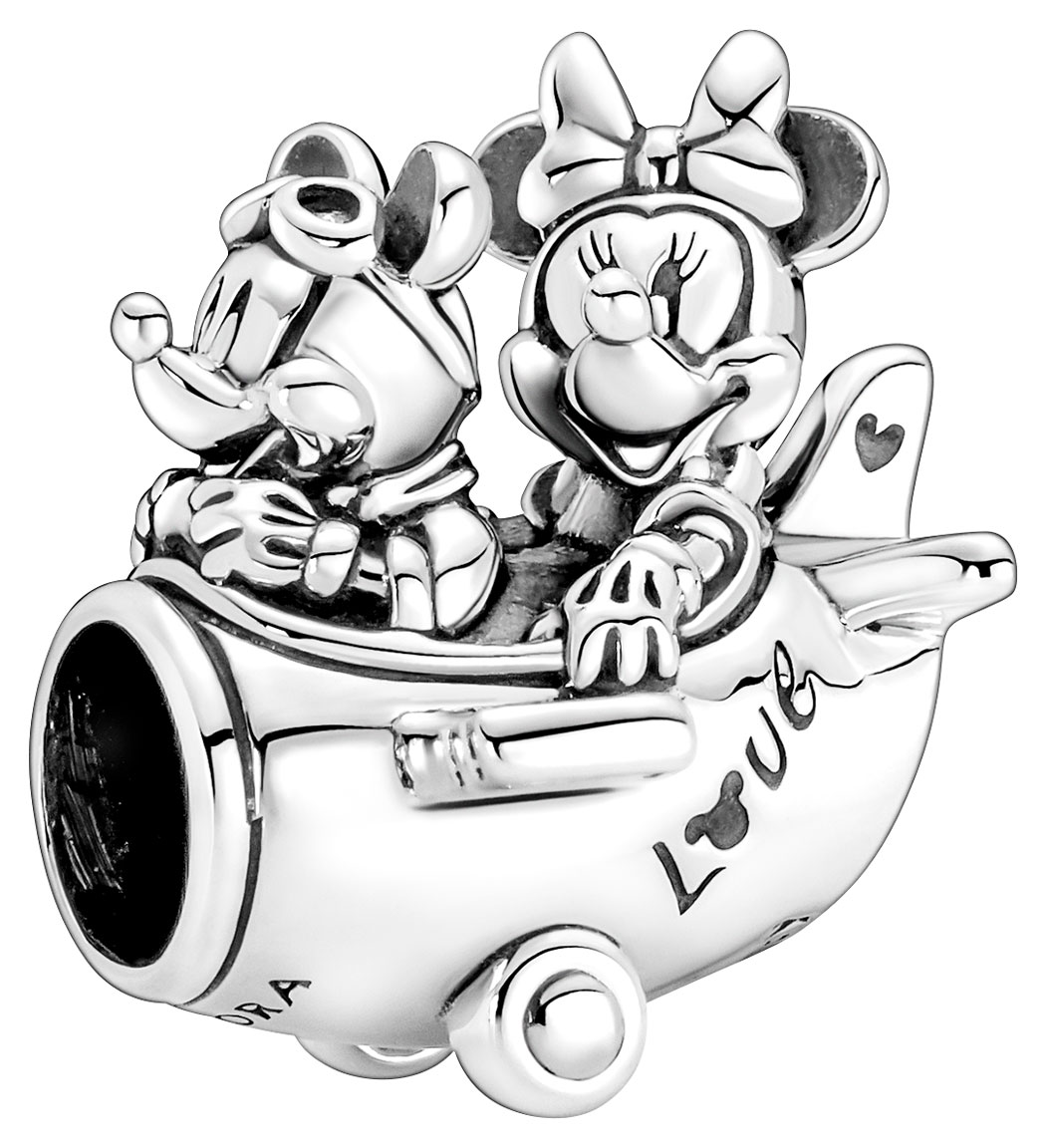 Pandora hela Mickey Mouse & Minnie Mouse Airplane 790108C00 -helassa on kuvattuna Minni ja Mikki Hiiri. Materiaali: sterling-hopea. Pandora-korut toimitetaan valmistajan alkuperäisessä pakkauksessa.