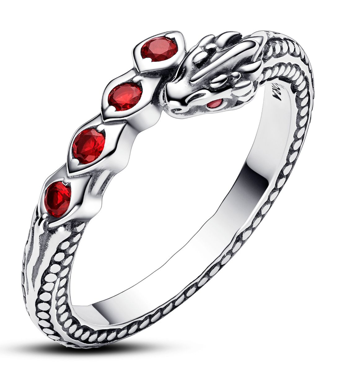 Pandora Game of Thrones Dragon Sparkling lohikäärmesormus 192968C01 on sterling-hopeaa, ja sitä koristaa syvänpunaiset kristallit. Juuri sinulle sopivan koon voit valita pudotusvalikosta. Pandora Game of Thrones-korut toimitetaan kauniissa lahjarasiassa.