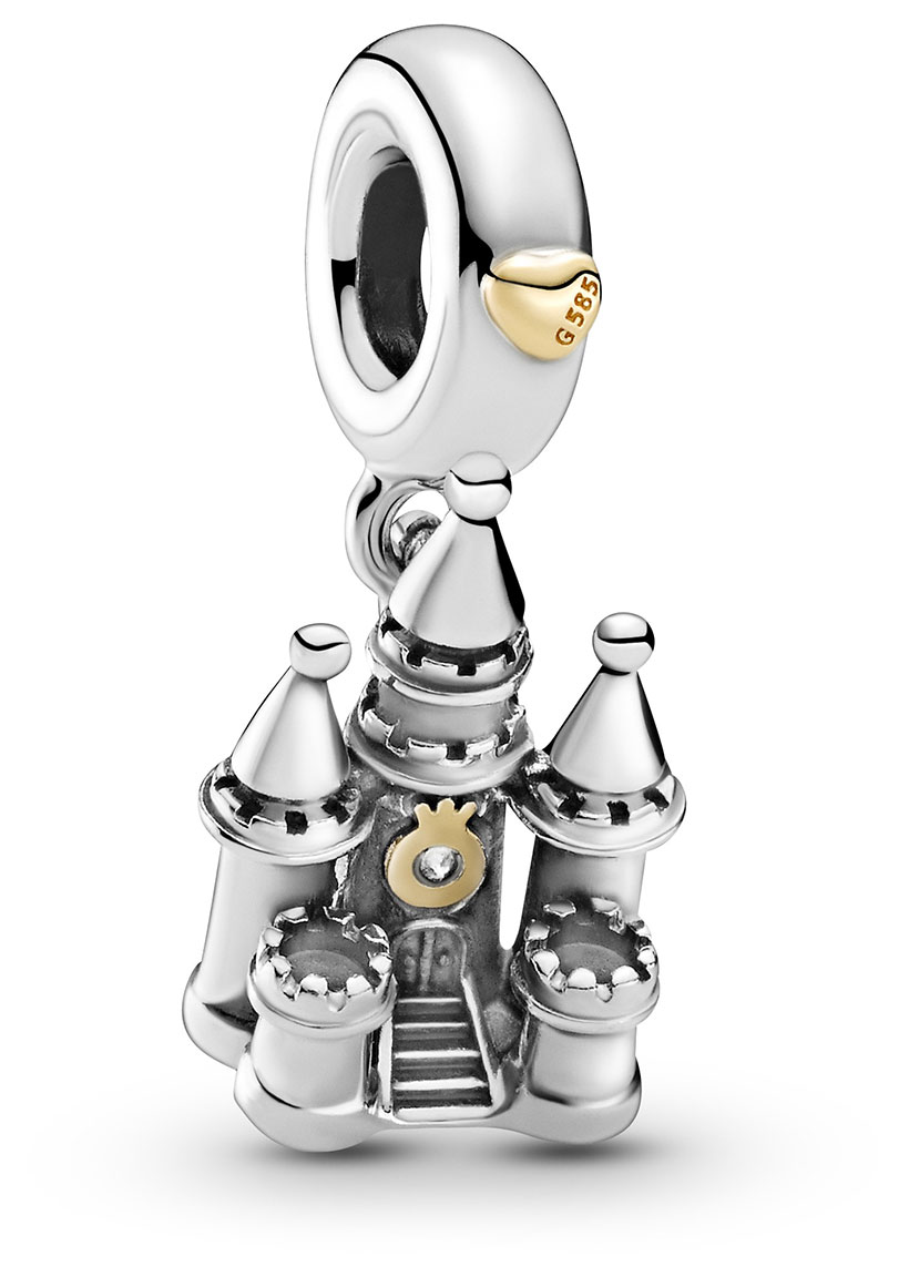 Pandora Two-tone Castle 799337C00 -hela on valmistettu sterling-hopeasta. Pandora 799337C00 on koristeltu 14k keltakullalla. Korun koko on 14 x 9,4 x 7,1 mm. Pandora-korut toimitetaan valmistajan alkuperäisessä pakkauksessa.