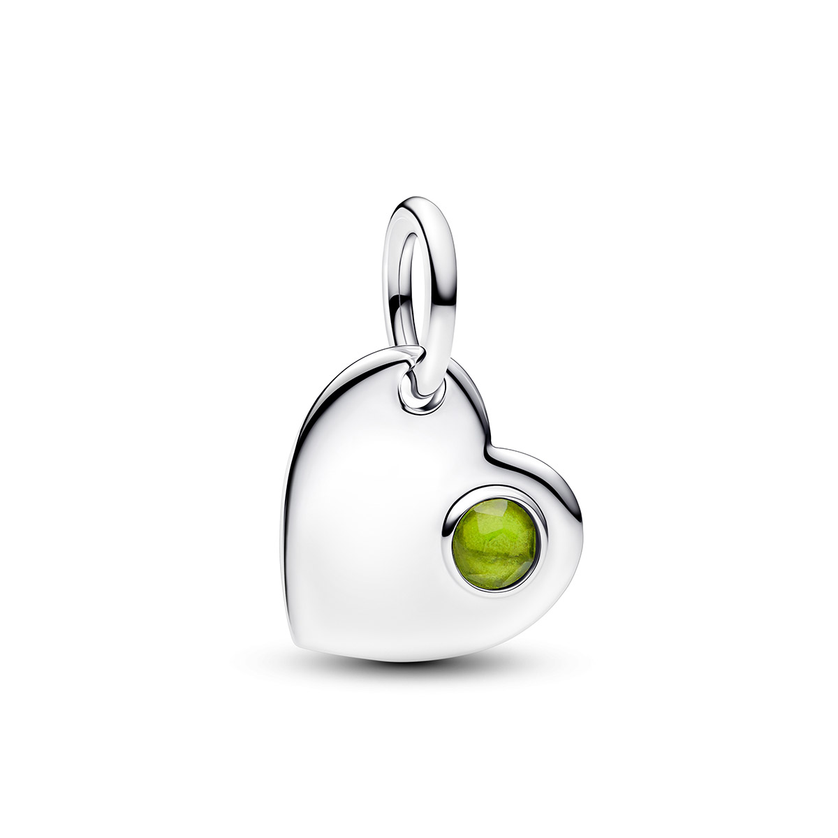 Tämä raikas Pandora-sydänriipus (794295C08) on valmistettu kirkkaasta sterling-hopeasta, ja sen toista puolta koristaa eloisa, pyöreäksi viistehiottu vihreä synteettinen kristalli, joka tuo koruun luonnollista säihkettä ja väriä. Riipuksen kääntöpuoli on jätetty sileäksi, jotta se voidaan personoida täysin omasi tyyliseksi yksilöllisellä kaiverruksella, kuten nimellä, päivämäärällä tai tärkeällä viestillä. Kooltaan siro ja tasapainoinen hela on 14,4 mm korkea, 14,2 mm leveä ja 2,4 mm syvä, mikä tekee siitä hienostuneen mutta huomiota herättävän lisän Pandora Moments -rannekoruun tai kaulakoruun. Se on täydellinen valinta, kun haluat yhdistää sterling-hopean ajattoman loiston, vihreän kristallin raikkauden ja korun kantajalle merkityksellisen, uniikin tarinan.