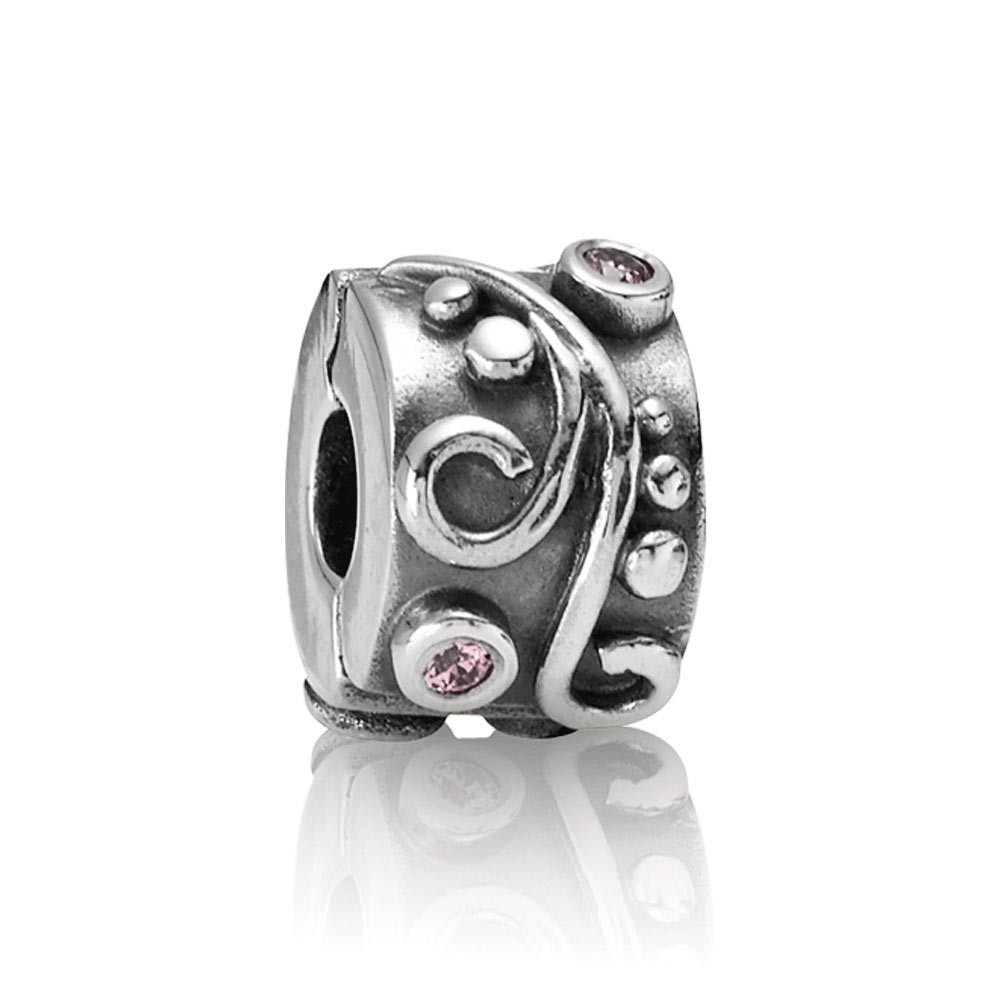 Hopeasta valmistettu Pandora lukkopala 790380PCZ. Lukkopalassa on neljä vaaleanpunaista Zirconia. Lukkopalan voi kiinnittää mihin tahansa kohtaan korua, mutta se on tarkoitettu laitettavaksi korussa olevien kierteiden päälle. Tällä tavoin koruun ei jää "tyhjiä" kohtia. Kaikki Pandora korut toimitetaan postikuluitta!
