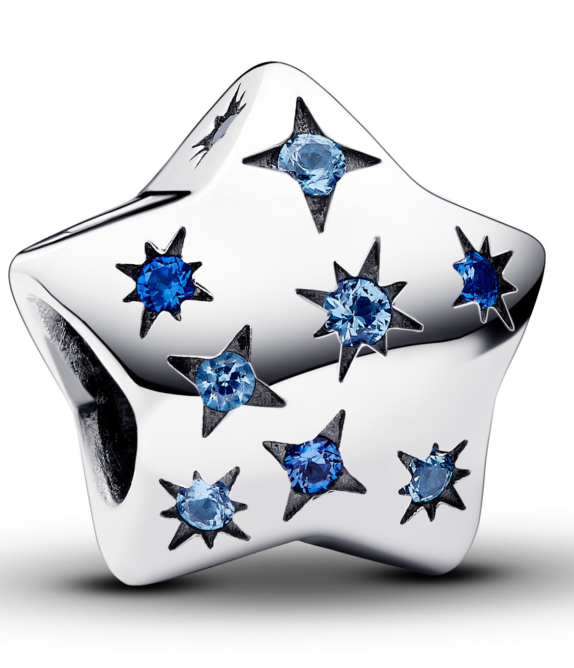 Pandora Moments Bold Sparkling Star Sterling silver Blue crystal 792974C01 tähtikoru on ihana lisä omaan pandoran koruun. Tähtikorua koristaa useat tähdet, jotka tuikkivat kauniisti kuin yötaivas. Koru itsessään on sterling-hopeaa, ja kivet ovat briljanttihiottuja, synteettisiä zirkonioita.