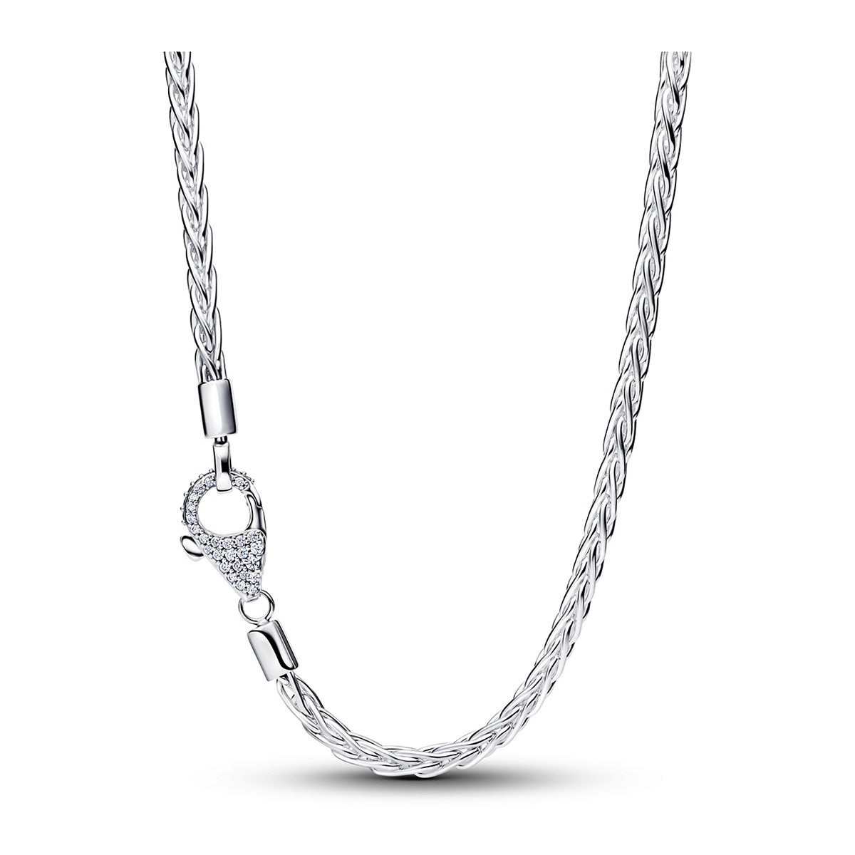 Pandora Moments 394463C01-45 kaulakoru yhdistää ajattoman foxtail-ketjun muotoilun ja modernin kimalluksen. Se on suunniteltu korostamaan kaulakorun klassista siluettia ylellisellä, yksityiskohtaisella viimeistelyllä.