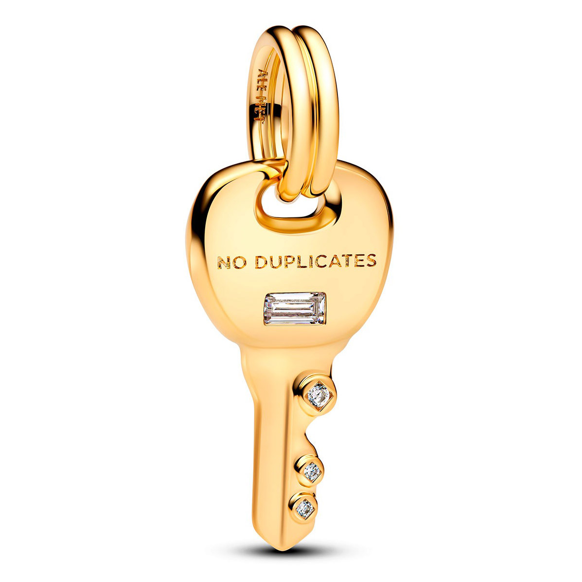 Pandora Moments 764347C01 on hienosti muotoiltu & roikkuva avain-hela, joka tekee rannekorusta persoonallisen ja ainutlaatuisen. Valmistettu 14 karaatin kultapinnoitetusta metalliseoksesta ja koristeltu kirkkaalla zirkonioilla. Syvyys 2,2 mm, korkeus 18 mm ja leveys 10 mm. Hela sopii täydellisesti yhteen muiden Pandora Moments -helojen kanssa tai hienoksi lahjaideaksi.