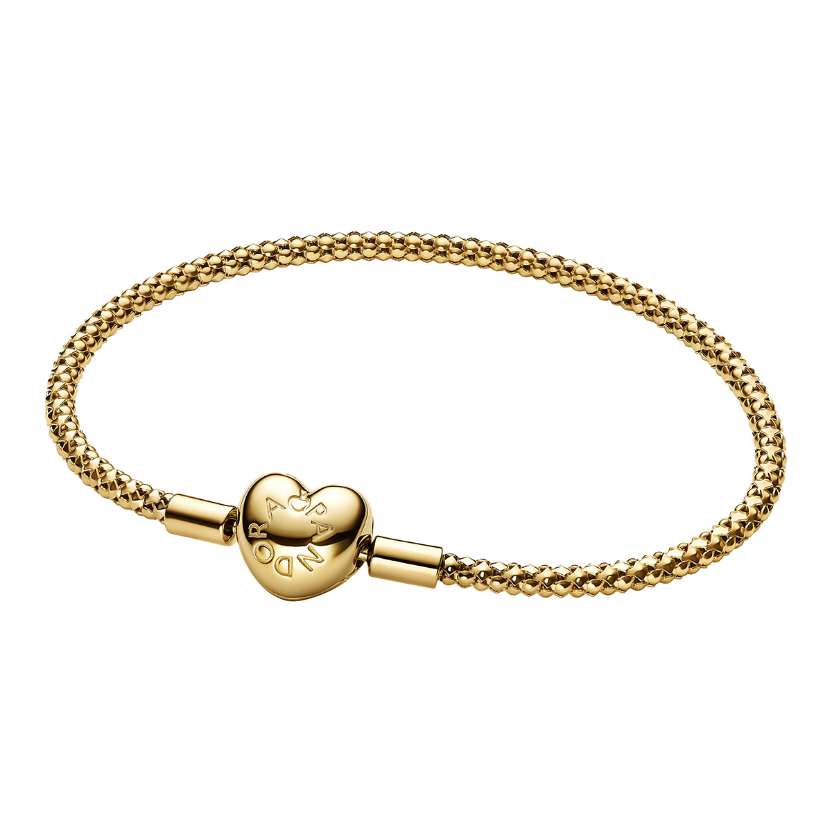 Tuo korukokoelmaasi persoonallisuutta ja tyylikästä ilmettä tällä Pandora Moments‑rannekkeella, joka toimii täydellisenä pohjana hela-koruillesi. 14k kultapinnoitettu käärmeketju tuo mielenkiintoista tekstuuria ja modernia estetiikkaa klassiseen hela‑rannekkeeseen. Siinä yhdistyvät hienostunut ketjurakenne ja kaunis sydämenmuotoinen lukko, joka toimii sekä koristeena että käytännöllisenä sulkijana.