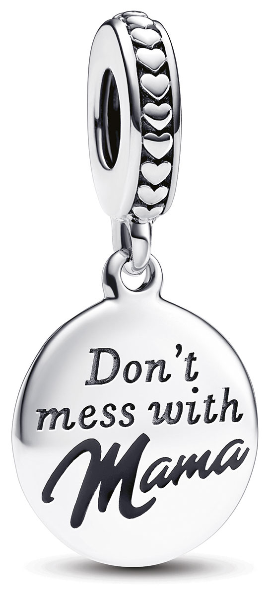 Pandora Moments Mama 793204C01 hela on valmistettu sterling-hopeasta, ja jonka pujotusreiän kohdalla on pieniä sydänkuviointeja. Laatassa on teksti "Don't mess with Mama". Laatan toinen puoli on tyhjä, johon voidaan kaivertaa omavalintainen teksti. Erinomainen lahjaidea muistamaan äitiäsi!