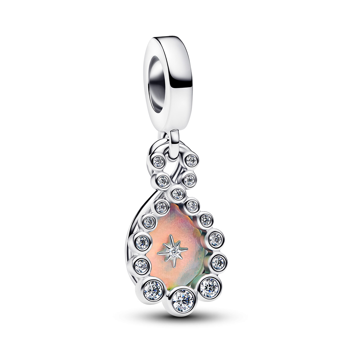 Lisää koruusi hienostunutta säihkettä ja luonnon hehkua Pandora Moments helalla. Hela pujotetaan Pandora Moments-kaula- tai rannekoruun helassa olevan reiän läpi. Tämä tyylikäs hela on valmistettu sterlinghopeasta, ja sen keskellä loistaa monivärisesti hohtava opaalin sävyinen kivi, jota ympäröi kimaltavien kirkkaiden kivien kehys. Kiven keskelle kaiverrettu tähtikuvio symboloi toivoa ja valoa. Helan koko on 13,9 x 8 mm.