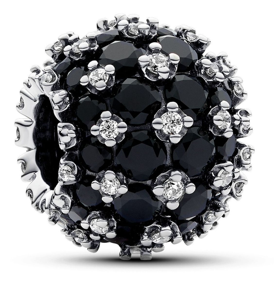 Pandora Moments Sparkling Pavé Round Black Charm Sterling silver hela 792630C04 on kaunis riipus, jolla viimeistelty Pandora-ranne- tai kaulakorun. Korun pintaa koristaa briljanttihiotut, mustat zirkoniat ylellisessä pave-istutuksessa. Riipus on valmistettu sterling-hopeasta. Pandora-korut toimitetaan valmistajan alkuperäisessä rasiassa.