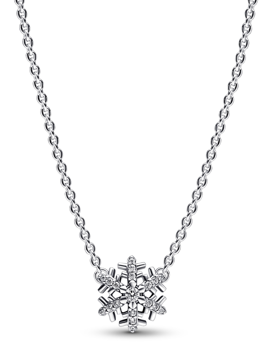 Pandora Moments Sparkling Snowflake kaulakoru 392371C01-45 henkii talvista taikaa. Tämä lumihiutale-kaulakoru on koristeltu useilla briljanttihiotuilla synteettisillä zirkonioilla. Suurien kivien ansiosta korut on helppo yhdistää myös muihin kirkkaisiin kivikorvakoruihin. Sarjasta on saatavana myös yhteensopivat korvakorut. Pandora-korut toimitetaan valmistajan alkuperäisessä pakkauksessa.