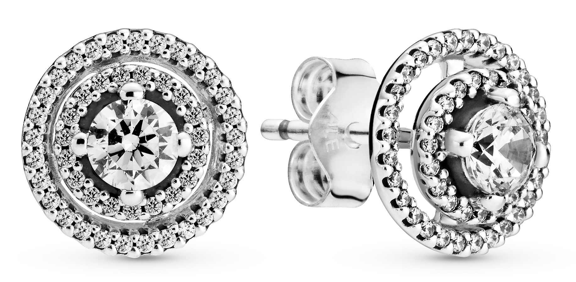 Pandora Spakling Double Halo 299411C01-halo-korvakorut ovat sterling-hopeaa, ja niitä koristaa näyttävä usean kirkkaan zirkonian spiraalimainen halo-istutus. Pandora-korut toimitetaan valmistajan alkuperäisessä pakkauksessa.