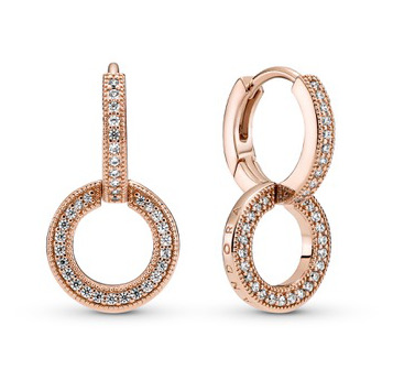 Pandora Sparkling Double Hoops 289052C01 -kovarenkaissa on näyttävä kaksirenkainen rakenne, ja korun pintaan on istutettu kirkkaita zirkonioita. Korut on valmistettu metalliseoksesta ja pinnoitettu 14-karaatin ruusukullalla. Korvakoruissa on saranalukitus. Korujen halkaisija on 11 mm ja paksuus 2,2 mm. Pandora-korut toimitetaan valmistajan alkuperäisessä pakkauksessa.