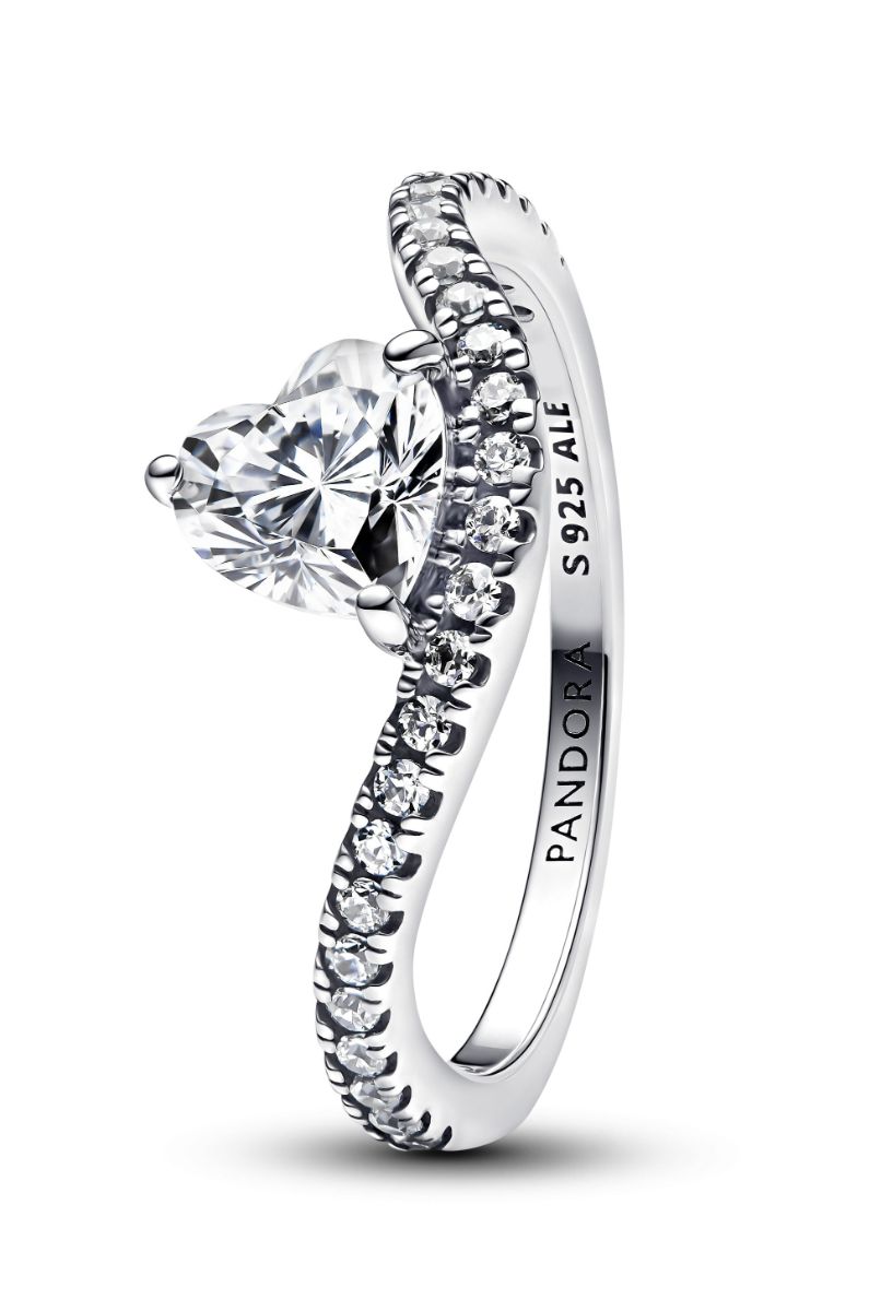 Pandora Wish and Wave Paveè aaltosormuksessa 163660C01 on kaareva runko, ja keskustaa koristaa lappeellaan oleva sydän. Ilmeen viimeistelee pienemmät briljantit zirkoniat. Sydänsormus on sterling-hopeaa. Sinulle sopivan koon voit valita pudotusvalikosta. Pandora-korut toimitetaan valmistajan alkuperäisessä rasiassa.