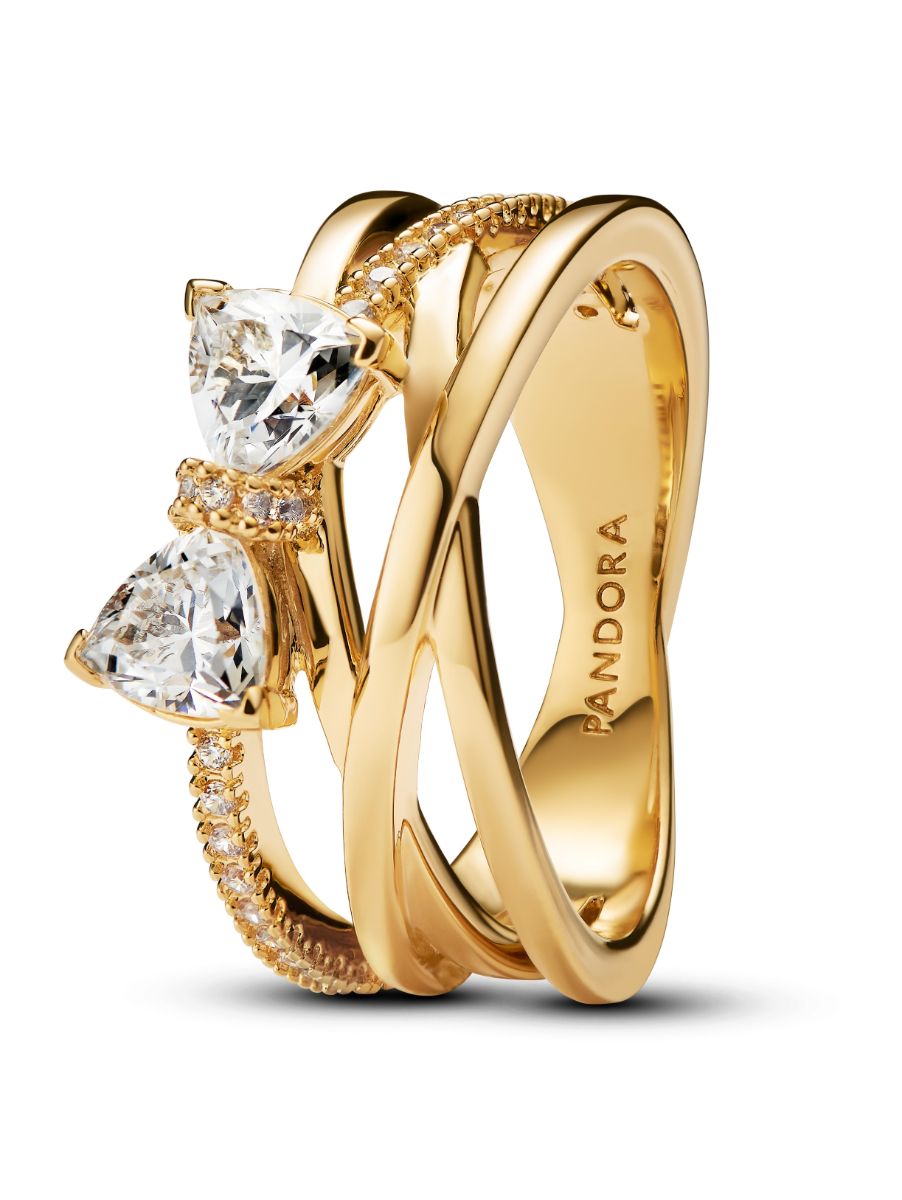 Pandora Timeless Bow 14k gold-plated clear cubic zirconia 163511C01 sormuksessa on kaksi pisaranmallista zirkoniaa, sekä kaunis 14-karaatin keltakultaus. Leveä sormus on näyttävä asuste useimpiin asuihin, ja sinulle sopivan koon voit valita pudotusvalikosta. Pandora-korut toimitetaan valmistajan omassa rasiassa.