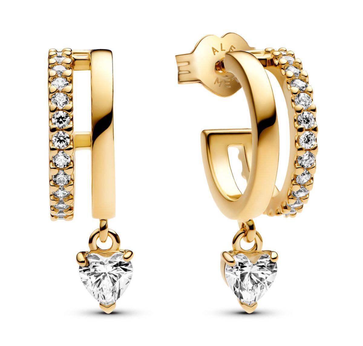 Pandora Classic kullatut korvarenkaat sydänriipuksella 263685C01 on 14-karaatin kullattua metalliseosta, ja niitä koristaa sydänmenmuotoiset zirkoniat. Pandora-korut toimitetaan valmistajan alkuperäisessä rasiassa.