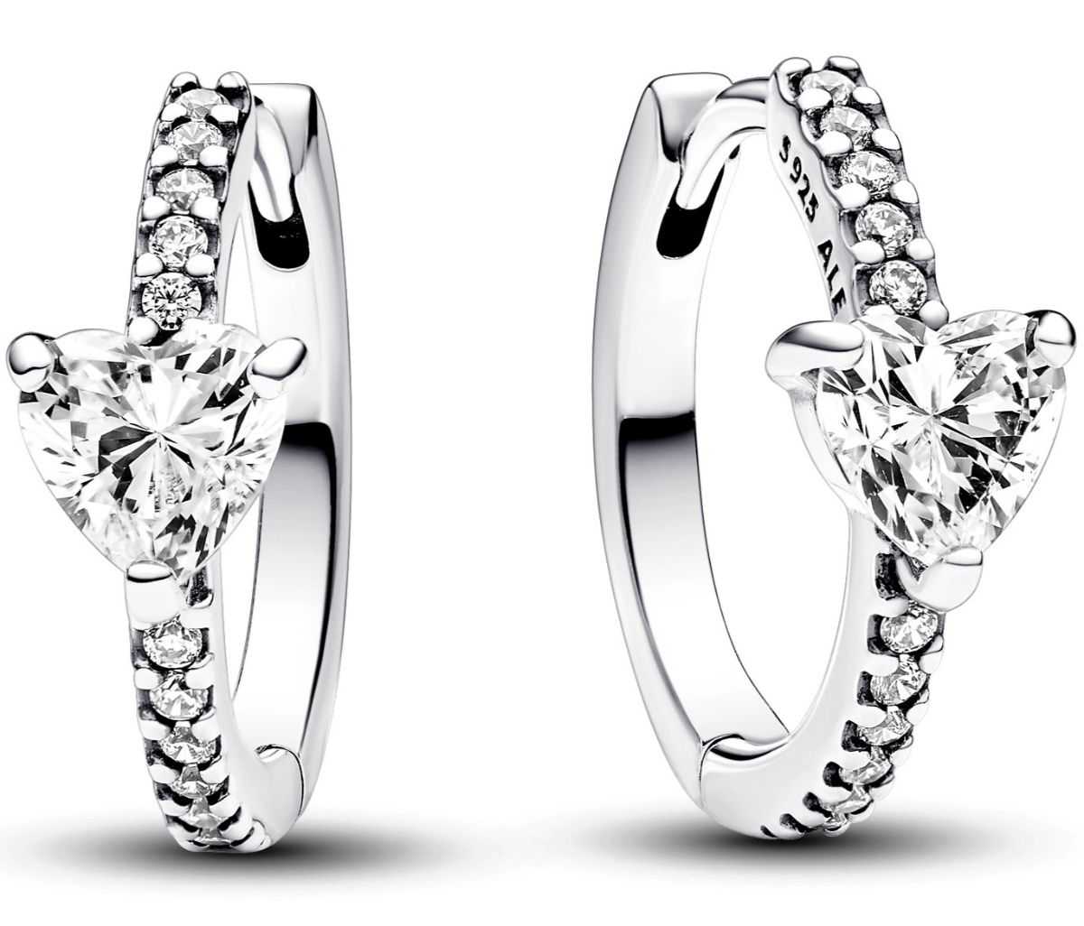 Pandora Timeless Sparkling Heart Hoop Earrings Sterling silver korvarenkaat 293101C01 on koristeltu kauniilla sydämenmuotoisella zirkonialla, jota reunustaa pienemmät briljantit kivet. Korvarenkaat ovat täydelliset korvakorut sekä arkeen että juhlaviin hetkiin. Sydänkorvakorut ovat sterling-hopeaa, ja niiden koko on 17 mm. Sydänkoristeen leveys on 5,7 mm. Pandora korvakorut toimitetaan valmistajan alkuperäisessä rasiassa.
