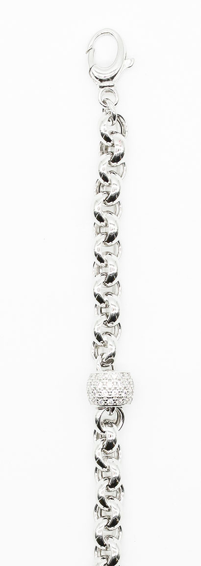 Papuranneketju zirconia-helalla R75/20.5 on valmistettu laadukkaasta sterling-hopeasta. Ketjun pituus on 20,5 cm. Hopeinen ranneketju on ajaton asuste jokapäiväiseen käyttöön.