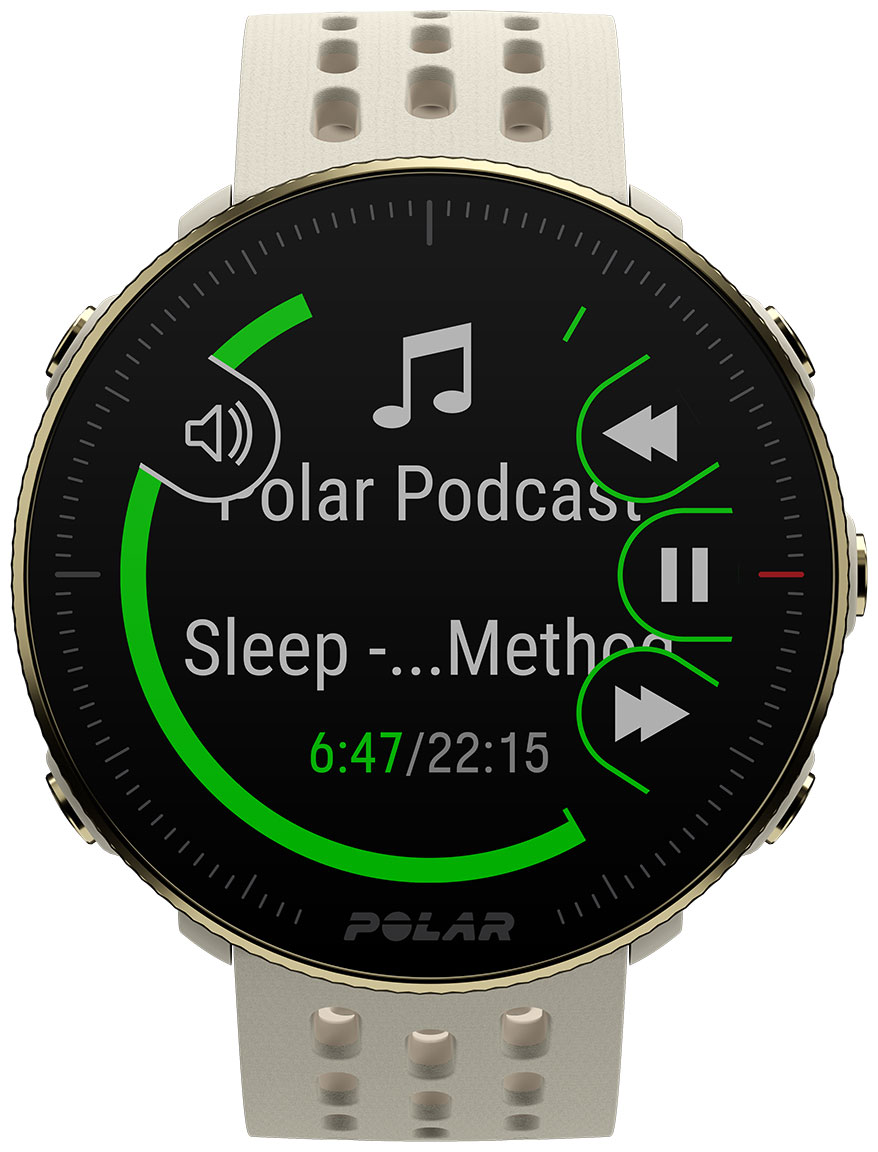 Toisen polven Polar Vantage -kellot sisältävät nyt uutena ominaisuutena musiikin hallinnan, jonka avulla se mitä kuuntelet treeniesi aikana on aina sinun hallittavissa. Musiikin hallinta -sovellus toimii puhelimesi kautta käyttämäsi musiikintoistopalvelun jatkeena. Kuunnellessasi musiikkia puhelimeltasi, voit vaihtaa kappaleesta toiseen tai säätää äänen voimakkuutta kätevästi suoraan kellon kirkkaalta värinäytöltä. Polar Vantage M2 Gold Champagne -multisport-kellolla voit nyt myös seurata sääennusteita. Ajoita ulkotreenisi sääennusteiden mukaisesti, ja vältä ikävät yllätykset!