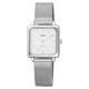 Q&Q QB51J201N naisten rannekellossa on paristokäyttöinen kvartsikoneisto sekä moderni nelikulmainen muotoilu. Valkoisessa kellotaulussa on hopeanväriset viisarit ja indeksit ja sitä suojaa mineraalilasi. Kellon runko on valmistettu kestävistä metalleista ja sen leveys on 28 mm ja paksuus 7,8 mm, tehden kellosta erittäin siron ja kevyen. Ohuen metallirannekkeen leveys kiinnityskohdasta on vain 16 mm ja pituus 155 - 200 mm. QB51J201N-rannekello kuuluu vesitiiviysluokkaan 30 m / 3 atm, eli se on roiskevesitiivis.