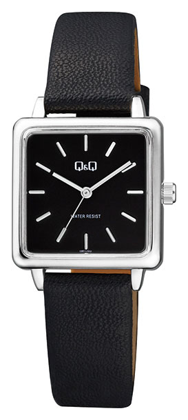 Q&Q QB51J302N naisten rannekellossa on paristokäyttöinen kvartsikoneisto sekä moderni nelikulmainen muotoilu. Mustassa kellotaulussa on hopeanväriset viisarit ja indeksit ja sitä suojaa mineraalilasi. Kellon runko on valmistettu kestävistä metalleista ja sen leveys on 28 mm ja paksuus 7,8 mm, tehden kellosta erittäin siron ja kevyen. Kellon kokonaispaino on 49 grammaa. Ohuen mustan nahkarannekkeen leveys kiinnityskohdasta on vain 16 mm ja pituus 155 - 200 mm. QB51J302N-rannekello kuuluu vesitiiviysluokkaan 30 m / 3 atm, eli se on roiskevesitiivis.