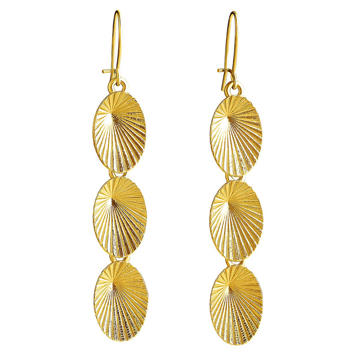 Ritva-Liisa Pohjalainen Sisin 53 595 00 003 on 3-osaiset korvakorut, jotka on valmistettu kullatusta 925-hopeasta. Soikeamuotoisissa paloissa on tyylikäs uurremuotoilu, joka tekee niistä näyttävät ja elegantit. Korvakoruissa on koukkukiinnitys ja ne ovat kooltaan 11 x 50 mm. Saatavilla myös hopeanvärisenä. Suunnittelija Ritva-Liisa Pohjalainen / Valmistaja Saurum Oy.