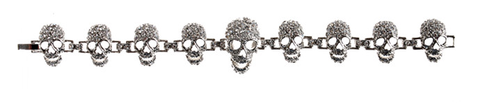 Rock by sweden rannekoru. Rannekorun pituus on 19,5cm. Kallojen korkeus 20 mm. Materiaali: Metalliseos, joka on päällystetty rodiumilla. Rock by Sweden korut toimitetaan valmistajan alkuperäisessä rasiassa.