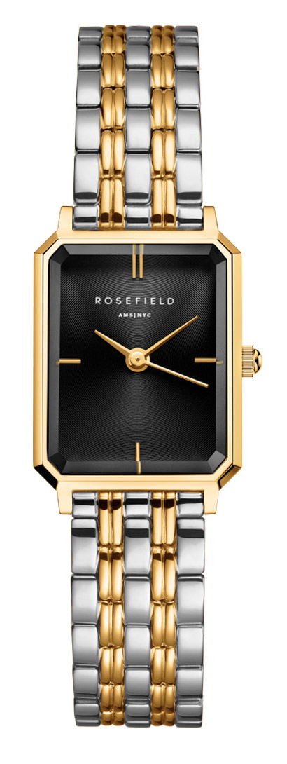 Rosefield Octagon Black Duotone OBDSG-O88 yhdistää geometrisen muotoilun ja ajattoman eleganssin. Rohkean kahdeksankulmainen kuori ja tyylikäs kaksivärinen ranneke tekevät tästä kellosta näyttävän valinnan modernille naiselle, joka arvostaa yksityiskohtia ja laatua.