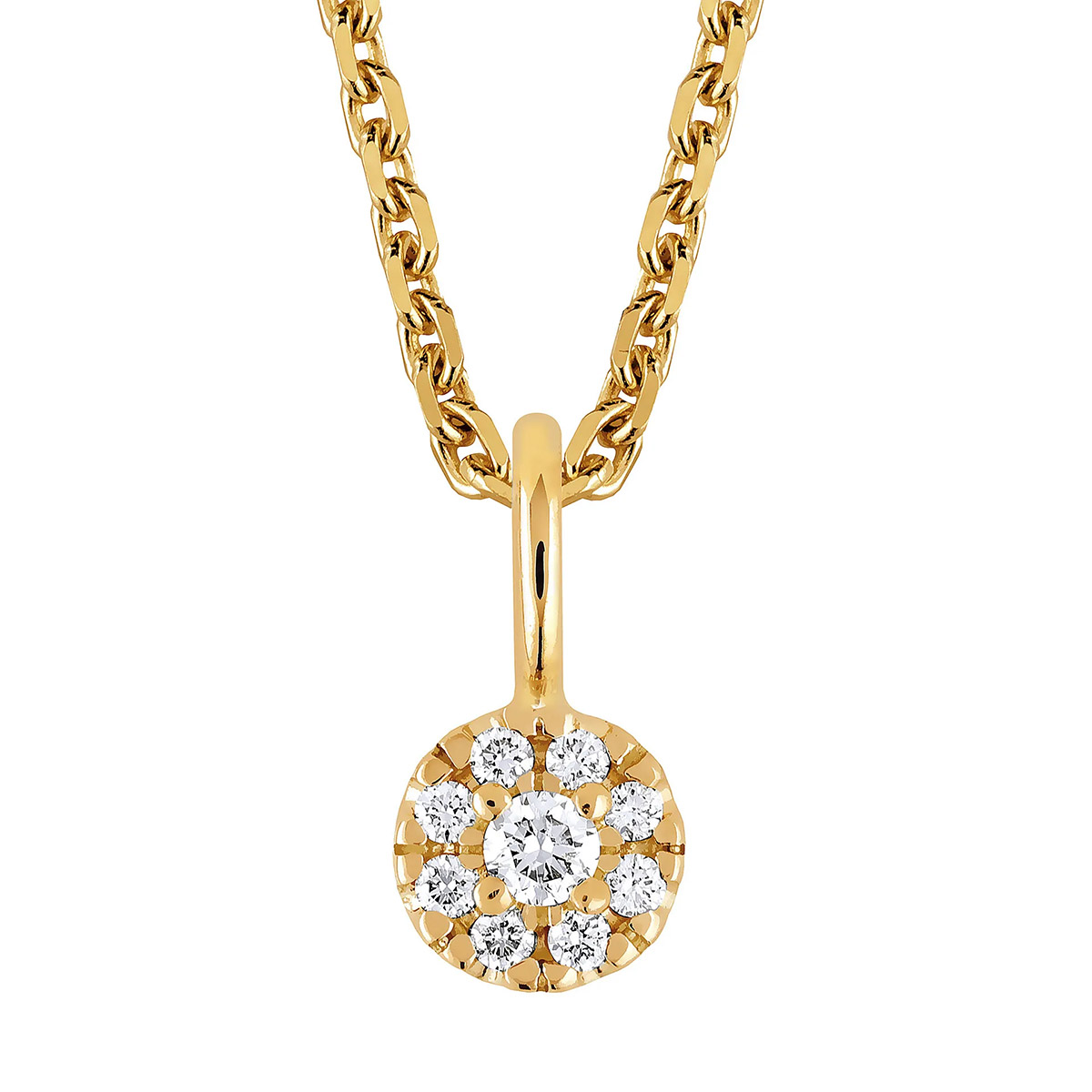 Kaunis timanttiriipus Sandbergin Toivomuslähde-mallistosta. Riipuksen materiaali on 14K keltakulta. Sandbergin koruissa käytetty kulta on puhtainta sertifioitua kierrätyskultaa. Tämän haloriipuksen timanttien yhteispaino on 0,07 ct, keskellä on yksi isompi timantti, jota reunustaa 8 pienempää timanttia. Briljanttihiottujen timanttien väri on Top Wesselton ja puhtaus VS. Riipuksen halkaisija on 5,1 mm. Ketju ei kuulu hintaan!