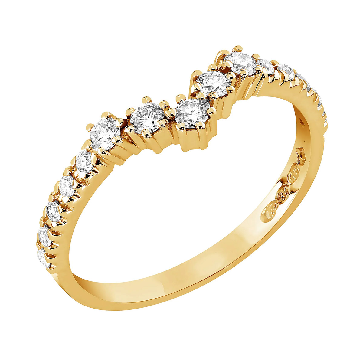 Sormuksen kauniisti muotoiltu rakenne on paitsi esteettisesti miellyttävä myös käytännöllinen. Leveys on 2,5 mm, mutta v-koristeen kohdalla sormus on 5,2 mm leveä, luoden sopivan yhdistelmän näyttävyyttä ja tyylikkyyttä. Sormus on valmistettu 14 karaatin keltakullasta, ja siinä käytetty kierrätetty kultamateriaali on sertifioitua, tehden siitä ympäristöystävällisen valinnan.