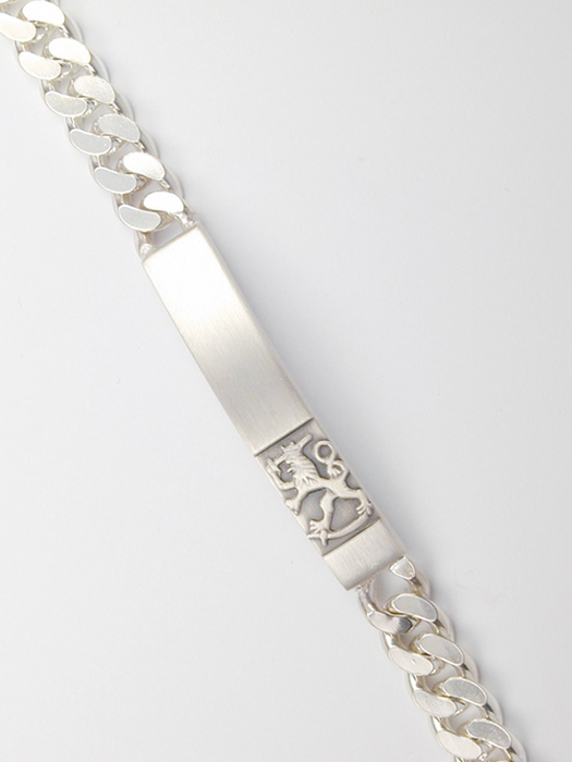 Saurumin Suomessa valmistama hopeinen Suomileijona ranneketju. Koru on nikkelitön.