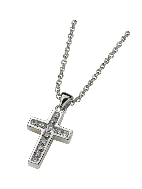 Laadukas Saurum rippiristi 5903 06 000, johon on istutettu synteettisiä Zirconia korukiviä. Risti ja ketju ovat täysin nikkelitöntä 925-sterling hopeaa. Ristin korkeus on 19 mm ja ketjun pituus 42/45 cm. Valitettavasti ristissä ei ole tilaa kaiverrukselle. Mukana 42/45 pituuksille säädettävä ketju.