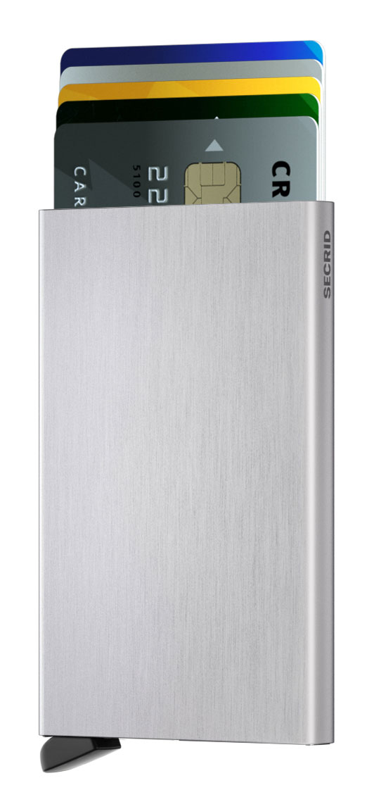 Secrid Cardprotector korttikotelo on kevyt ja käytännöllinen. Korttikotelo on alumiinia ja sinne mahtuu 6 korttia, jotka nousevat porrastetusti ylös napin painalluksella. Tästä on helppo valita haluamansa kortti. Lompakko toimitetaan tyylikkäässä lahjarasiassa.