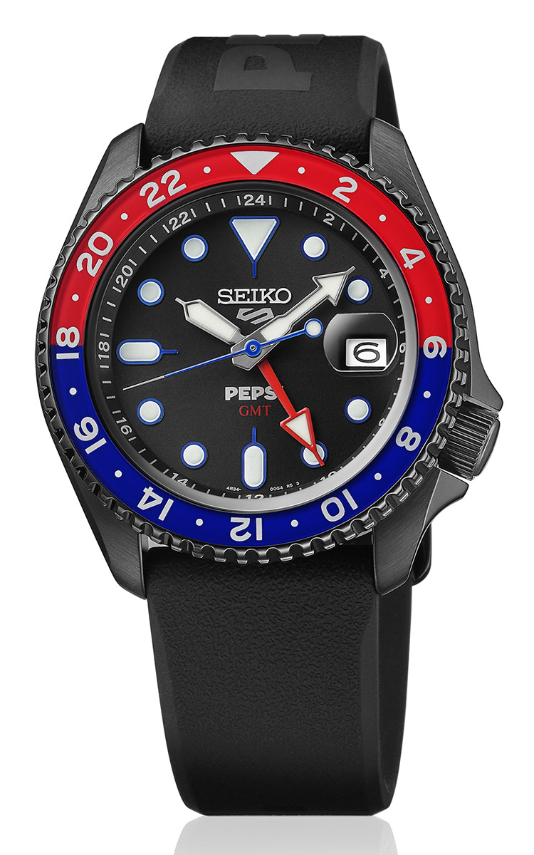 Kelloa siivittää luotettava 4R34-koneisto, jossa on GMT-toiminto kahden aikavyöhykkeen samanaikaiseen näyttämiseen. Tämä on ensimmäinen SKX-sarjan GMT-malli, jossa on silikoniranneke. Rannekeessa yksityiskohdat kruunaavat kokonaisuuden: "PEPSI" on kohopainettuna kello 12:n puolella, ja Pepsi-logo näkyy tyylikkäästi kello 6:n puolella.