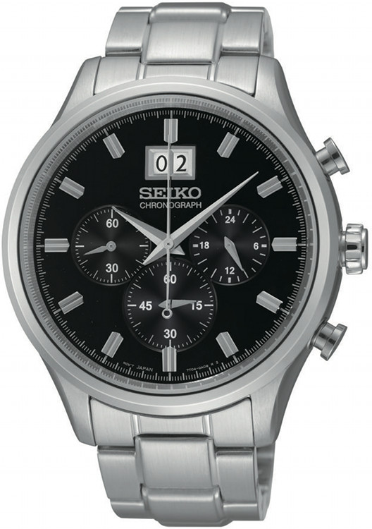 Seiko Chronograph SPC083P1. Kellon rungon leveys on 42mm ja rannekkeen 20mm. Kellossa on ajanotto sekä päivyri. Laadukkaille Seiko -kelloille myönnetään 2 vuoden takuu. Kello toimitetaan valmistajan alkuperäisessä rasiassa.