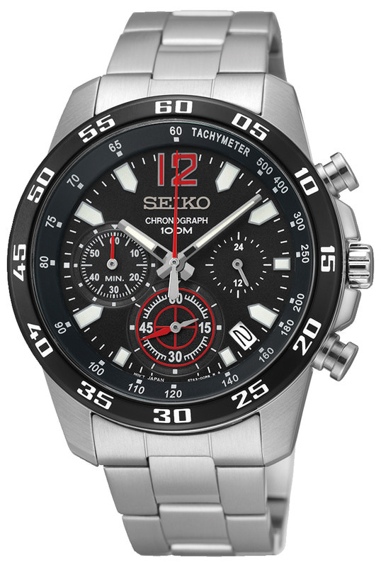 Seiko Chronograph SSB129P1. Kellon rungon leveys on 41mm ja rannekkeen 20mm. Kellossa on ajanotto sekä päivyri. Laadukkaille Seiko -kelloille myönnetään 2 vuoden takuu. Kello toimitetaan valmistajan alkuperäisessä rasiassa.