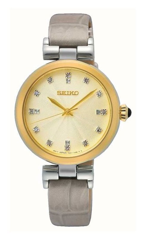 Seiko Ladies SRZ546P1 -kellossa on sampanjan värinen kellotaulu, harmaa nahkaranneke ja hopeanvärinen runko. Kellon rungon leveys on 30 mm ja paksuus 6,32 mm Kaikille Seiko-kelloille myönnetään 3 vuoden takuu ja ne toimitetaan valmistajan alkuperäisessä rasiassa.
