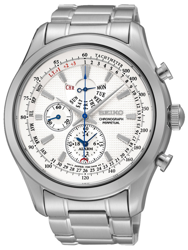 Seiko Perpetual Alarm Chronograph SPC123P1. Hintaluokassaan ominaisuuksiltaan ylivoimainen kello. Kellossa ikuinen perpetual kalenteri, ajanotto sekä herätys/hälytys. Kellon rungon leveys on 43mm ja rannekkeen 20mm. Laadukkaille Seiko -kelloille myönnetään 2 vuoden takuu. Kello toimitetaan valmistajan alkuperäisessä rasiassa.
