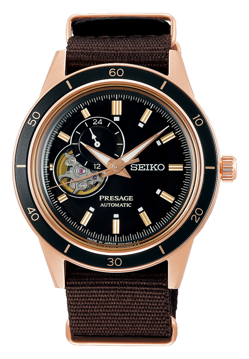 Seiko Presage 60s Style SSA426J1 on tyylikäs miesten automaattikello. Kellon 41 mm leveä ruusukullanvärinen runko on valmistettu ruostumattomasta teräksestä. Tyylikkään ulkonäön kruunaa ruskea tekstiiliranneke, jonka leveys kiinnityskohdasta on 20 mm. Mineraalilasin alla suojassa on musta kellotaulu, jossa luminoidut indeksit ja osoittimet. Seiko SSA426J1 kuuluu vesitiiviysluokkaan 50 m / 5 atm, joten kello on rajoitetusti vesitiivis. Kaikille Seiko-kelloille myönnetään 2 vuoden takuu, ja ne toimitetaan valmistajan alkuperäisessä rasiassa.