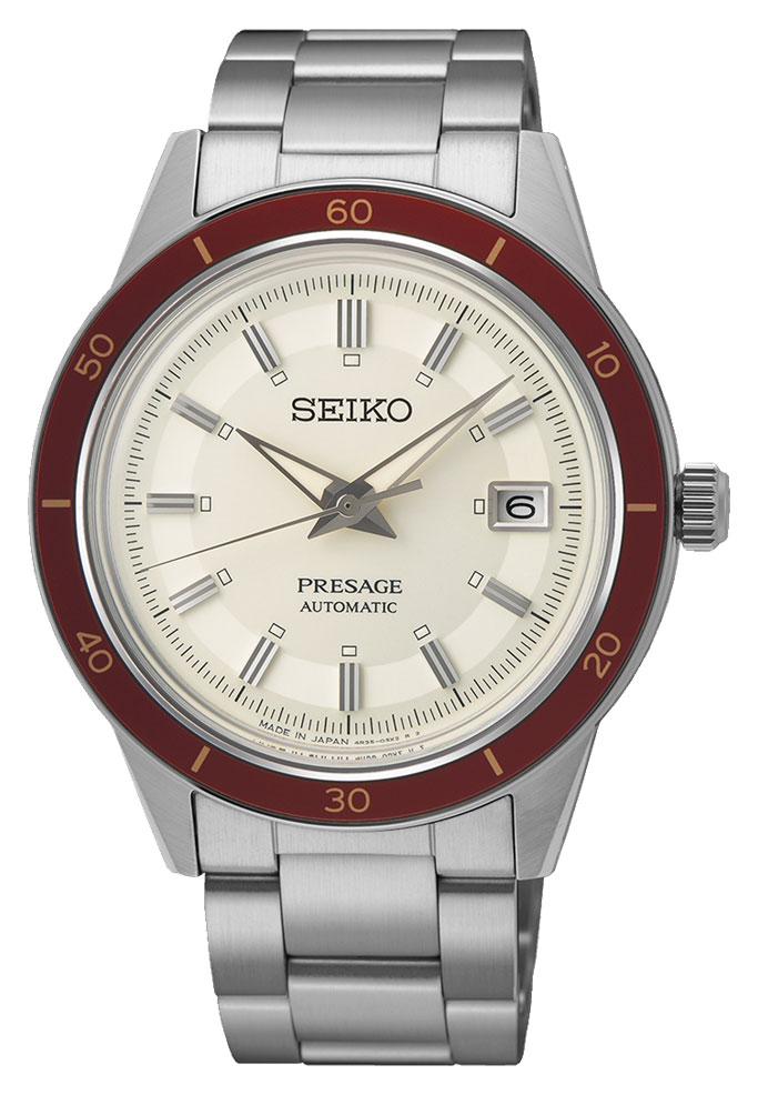 Seiko Presage Automatic SRPH93J1 on tyylikäs miesten automaattikello. Rannekellon hopeanvärinen ruostumattomasta teräksestä valmistettu runko on 40,8 mm leveä ja 12 mm paksu. Kellon punainen kehä sointuu kauniisti yhteen vaalean kellotaulun kanssa. Runkoon kiinnittyy hopeanvärinen teräsranneke, jonka leveys kiiinnityskohdasta on 20 mm. Hardlex-mineraalilasin alla suojassa on kellotaulu, jossa päivyri kello kolmessa. Kellossa on 23-kivinen 4R35-automaattikoneisto 41 tunnin käyntivaralla, jonka voi vetää myös käsin. Seiko SRPH93J1 kuuluu vesitiiviysluokkaan 50m / 5atm, joten se on rajoitetusti vesitiivis (uimista ei suositella). Kaikille Seiko-kelloille myönnetään 3 vuoden takuu ja ne toimitetaan valmistajan alkuperäisessä rasiassa.
