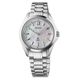 Seiko Prospex SUR605J1 naisten rannekello on urheilullisuuden ja eleganssin yhdistelmä. Kellossa on 6N01 kvartsikoneisto, jonka käyntiaika on n. 3 vuotta. Runko on valmistettu ruostumattomasta teräksestä, jonka halkaisija on 34 mm ja paksuus 8,9 mm. Kellotaulu on tehty lumoavasta helmiäismateriaalista, joka sopii tyylikkäisiin tilaisuuksiin. Lumibrite-pinnoitetut viisarit ja indeksit parantavat kellon luettavuutta missä tahansa ympäristössä. Laadukas teräsranneke takaa erinomaisen mukavuuden lyhyempien linkkien ansiosta, joiden ansiosta se mukautuu kaikenkokoisiin ranteisiin. Ranneke on leveydeltään 16 mm. Seiko Prospex SUR605J1 kuuluu vesitiiviysluokkaan 200m / 20atm, joten se soveltuu uintiin ja laitesukellukseen.