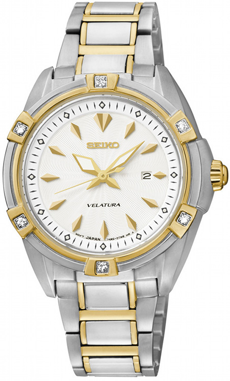 Seiko Velatura SXDF50P1. Kellon rungon leveys on 33mm ja rannekkeen leveys 13mm. Kellossa on 6 aitoa timanttia. Kellolla on kahden vuoden takuu ja se toimitetaan valmistajan alkuperäisessä rasiassa.