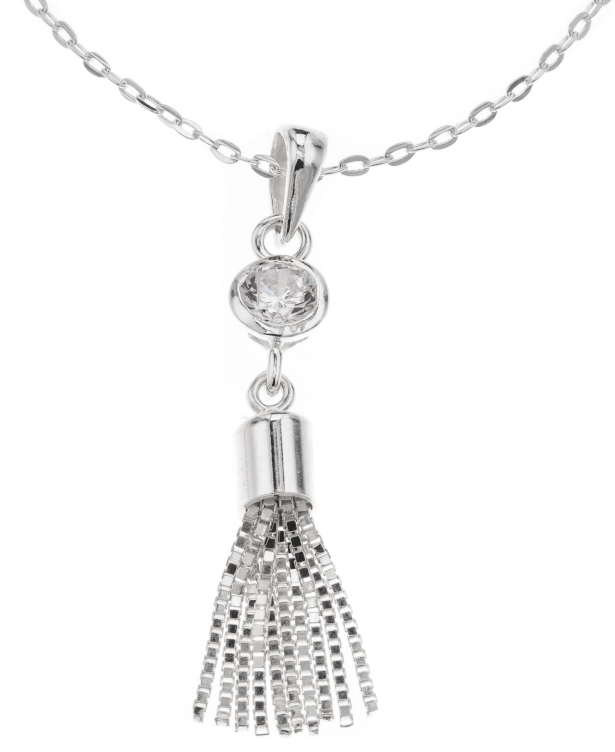 Hopeisessa Silver Bar Hollywood tassel zirkonia 42+3mm 7968 riipuksessa on vanhaa 1920-luvun Hollywood-glamouria. 28 mm pitkän riipuksen keskelle on istutettu briljanttihiottu zirkonia. Ketjun pituus on 45 cm, ja se on säädettävissä myös 42 cm pituuteen. Silver Bar -korut toimitetaan valmistajan alkuperäisessä pakkauksessa.