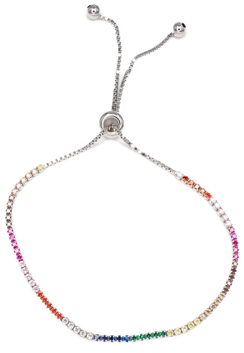 Silver Bar Sateenkaari rannekoru flex 6471 on täydellinen kesäkoru. Tämä värikas rannekoru on hopeaa, ja sen pintaa koristaa värikkäät, synteettiset zirkoniat. Rannekorun pituuden säätäminen tapoahtuu flex-lukolla, ja ranneke sopii useimpiin ranteisiin. Korun paksuus on 2 mm.