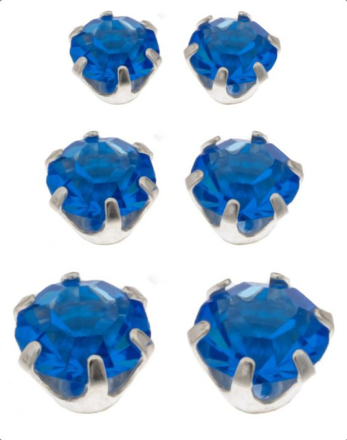 Kun korvassa on useampi lävistys, on yhteensopivien korvakorujen löytäminen on usein hankalaa. Tässä Silver Barin lahjapakkauksessa 7125 on kolme erikokoista zirkoniakorvakorua, joiden leveys on 3+4+5 mm. Sinisissä zirkonioissa on pyöreä hionta, ja korujen takaa löytyy tappikiinnitys. Silver Barin korut valmistetaan hopeasta. Silver Bar -korut toimitetaan valmistajan alkuperäisessä pakkauksessa.